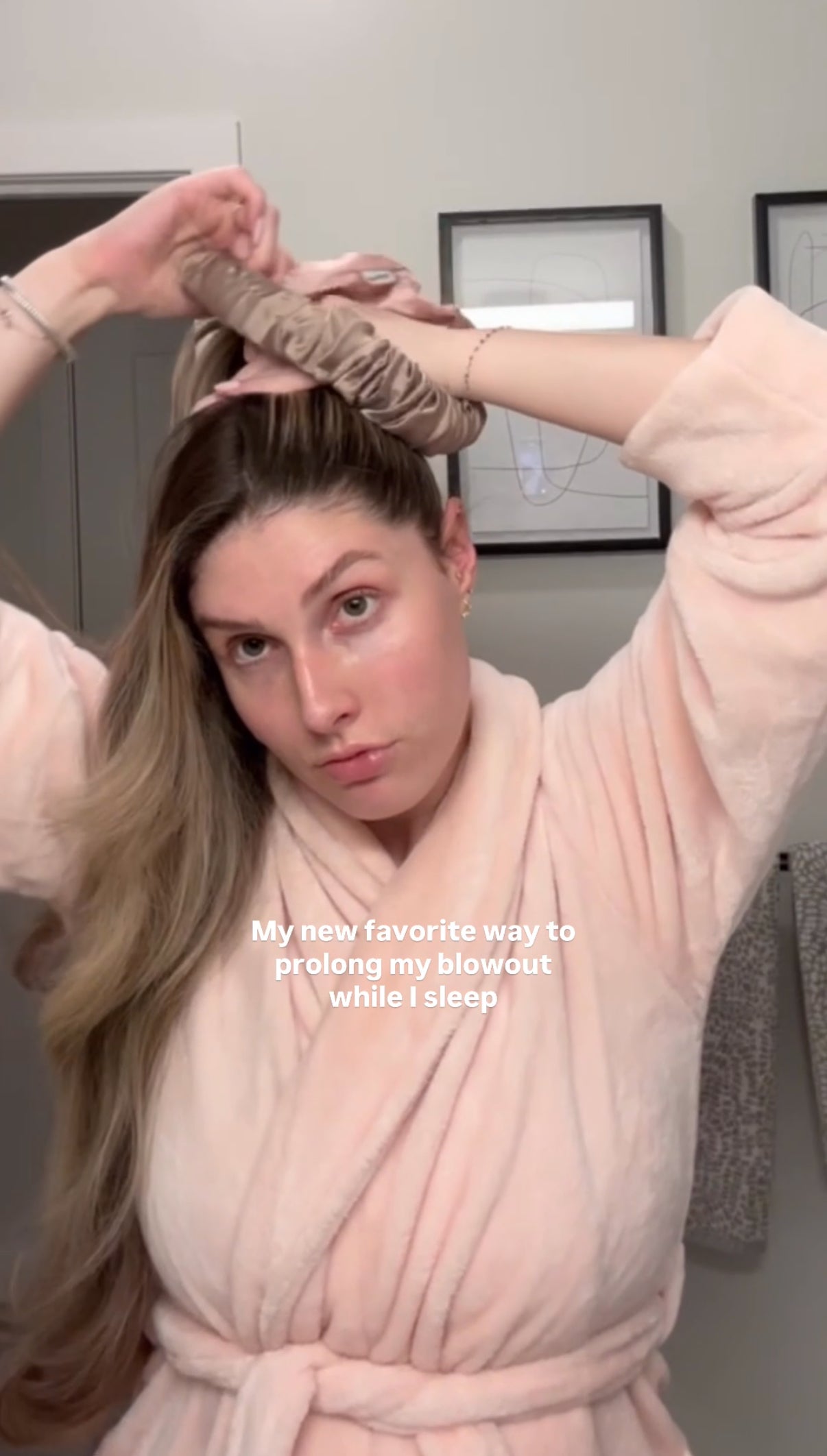 - Put in your Sleepy Tie® – Secure your hair into a comfortable bun with your Sleepy Tie®.